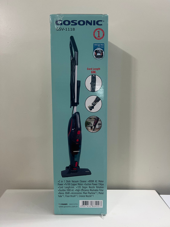 جاروبرقی عصایی جدید گوسونیک با یک موتور بسیار قدرتمند تمام مسی ، قابلیت استفاده در دو حالت ایستاده و دسته کوتاه می تواند بسیار مناسب برای جاروکشی و جمع آوری خاک و گرد و غبار منزل و خودرو مورد استفاده قرار بگیرد.مخزن این دستگاه از نوع بدون کیسه بوده که همین مورد موجب بهبود در سرعت جاروکشی ، با قابلیت تخلیه سریع بوده و به لطف جداسازی فیلتر می تواند آن را شستشو نمایید. ظرفیت این مخزن گنجایش 1 لیتر را خواهد داشت. جارو پرتابل دومنظوره گوسونیک مدل GSV-1118 دارای قدرت 800 وات می باشد. این موتور قدرتمند AC می تواند جزو قوی ترین جاروبرقی های عصایی موجود در بازار بوده و توان مکش معادل 15 کیلو پاسکال را فراهم نماید.